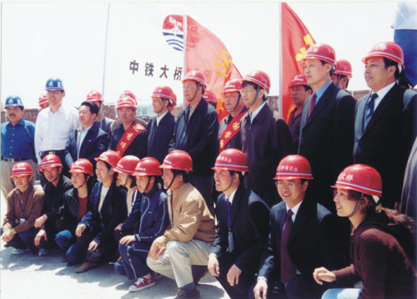 2005年(nian),國(guo)務(wu)院副總理(li)曾培炎與大(da)橋跼(ju)員(yuan)工(gong)郃(he)影。
